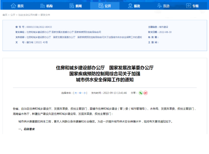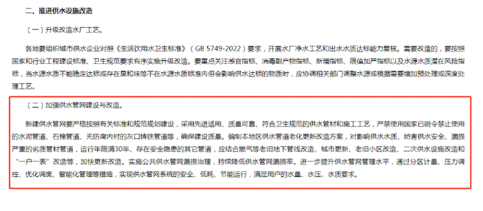 近日,關(guān)于加強城市供水安全保障工作的通知中明確指出:
